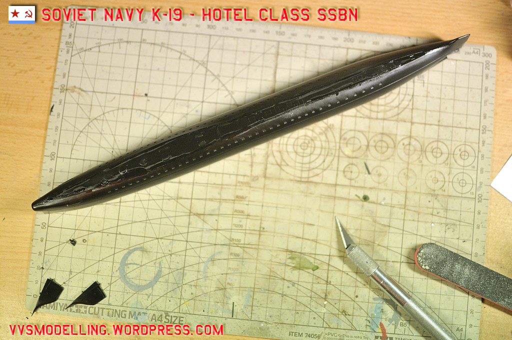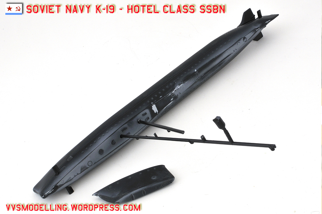 The kit I use for this project is Flagman in 1:350 scale. I strongly believe the moulds are the same as Zvezda’s from several years ago. The plastic has a textured look and some mould imperfections can be seen but on modern subs, these are easily sanded away as there is little detail on the hull. The part count is small and as such this should be a quick and easy build.