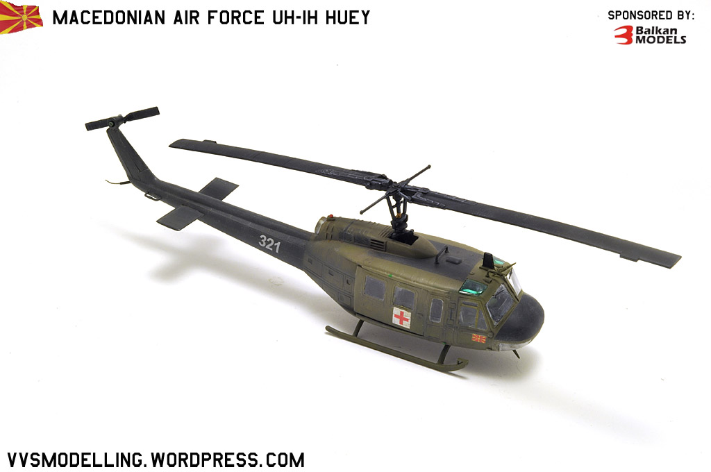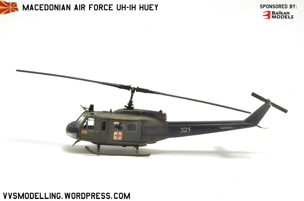 Finally finished! This was probably the worst model I have built to date from Revell. It might have been a good model in its time but as it seems, this kit is several decades old and worn-out molds only make it worse. Anyhow here she is, finished. Definitely not a contest model but certainly a welcome addition to my small air forces collection. If you are contemplating on buying a 1:72 long fuselage Huey (D, H models) choose Italeri. I have heard horror stories but at least based on the sprue shots I’ve seen on the internet, it is more detailed model and you will easily achieve better results than I did. I thank Balkan Models for the kit and decal sheet – the few decals that were used performed brilliantly – no carrier film is visible and no silvering appeared; I even didn’t have to use the setting solution.