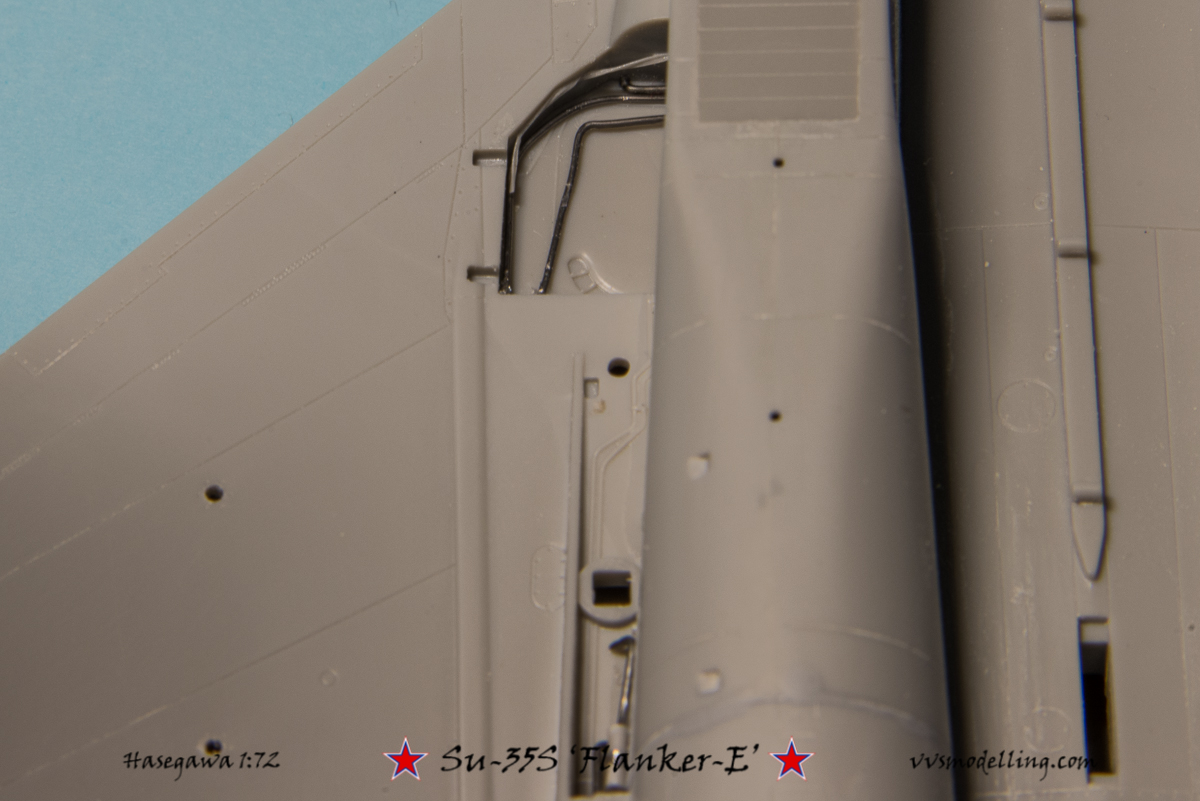 Next thing I tackled were wheel wells. They are usually devoid of much details which can be seen on real aircraft. Armed with some reference photos I’ve decided to improve the looks, armed with 0.3 and 0.5mm soldering wire, bits and pieces of plasticard and good old classic stretched sprue.