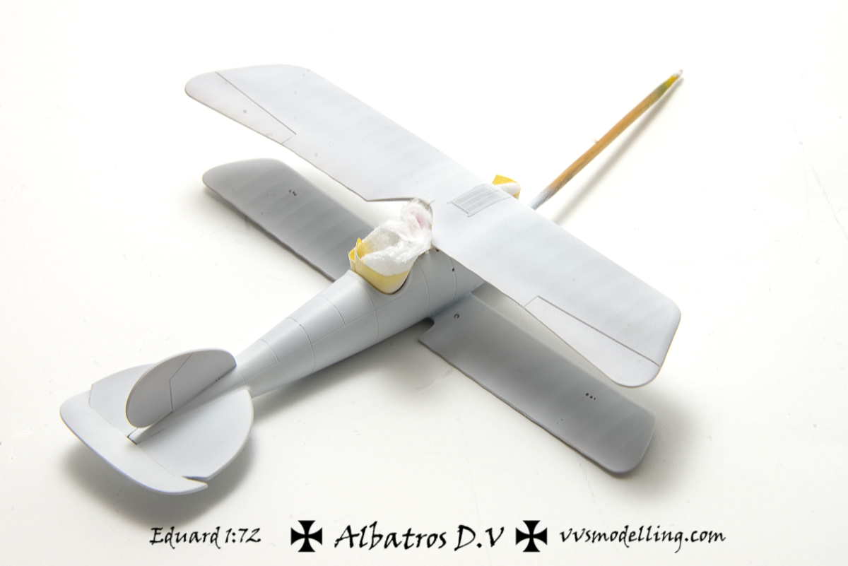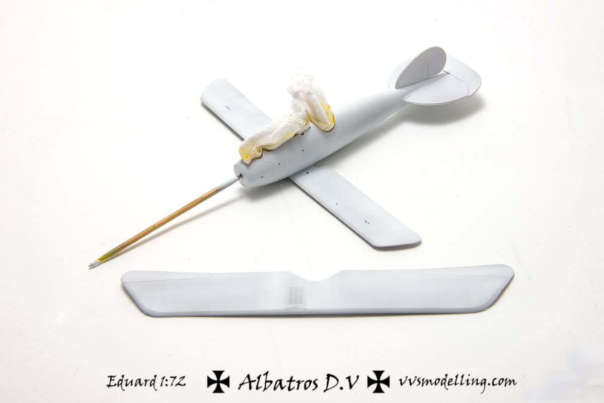 Given that fuselage will be painted in bright colours, Alclad’s White primer was used; remember Red, Yellow and Orange colours prefer white undercoat.