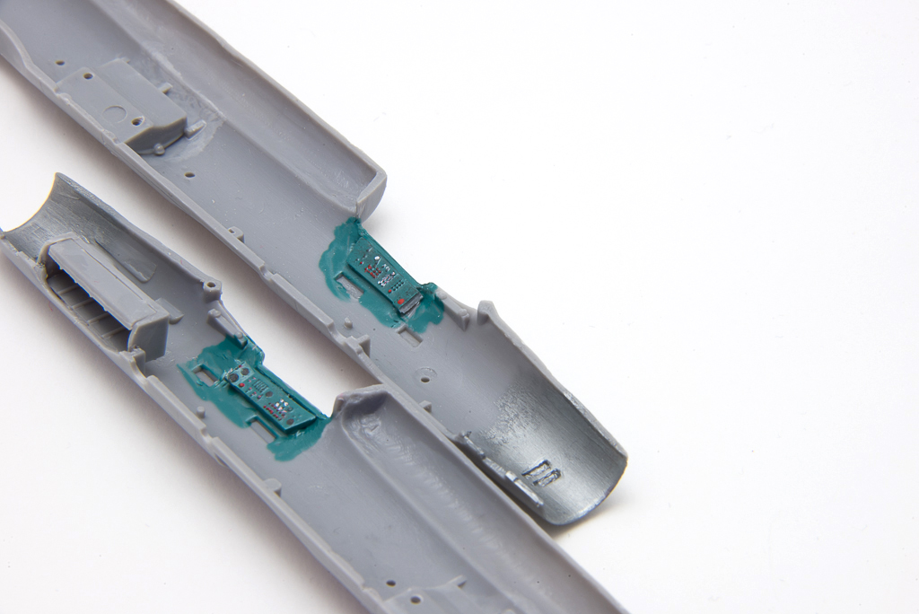 Side panels feature slightly more pronounced details compared to the other cockpit details. However when you finish the tub and try to insert it, you will notice that it doesn’t fit. Why, you might ask? Because these side panels are about 2-3mm too long and the instrument panel doesn’t fit in. Cutting off the panels slice by slice and dryfitting eventually solved the problem.