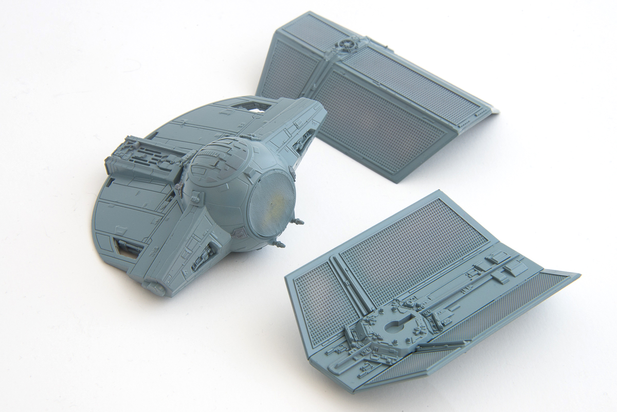 TIE Interceptor has the most clever and modeller friendly solution – solar panels are moulded separately and when finished with painting, they can just be inserted segment by segment into the framing.