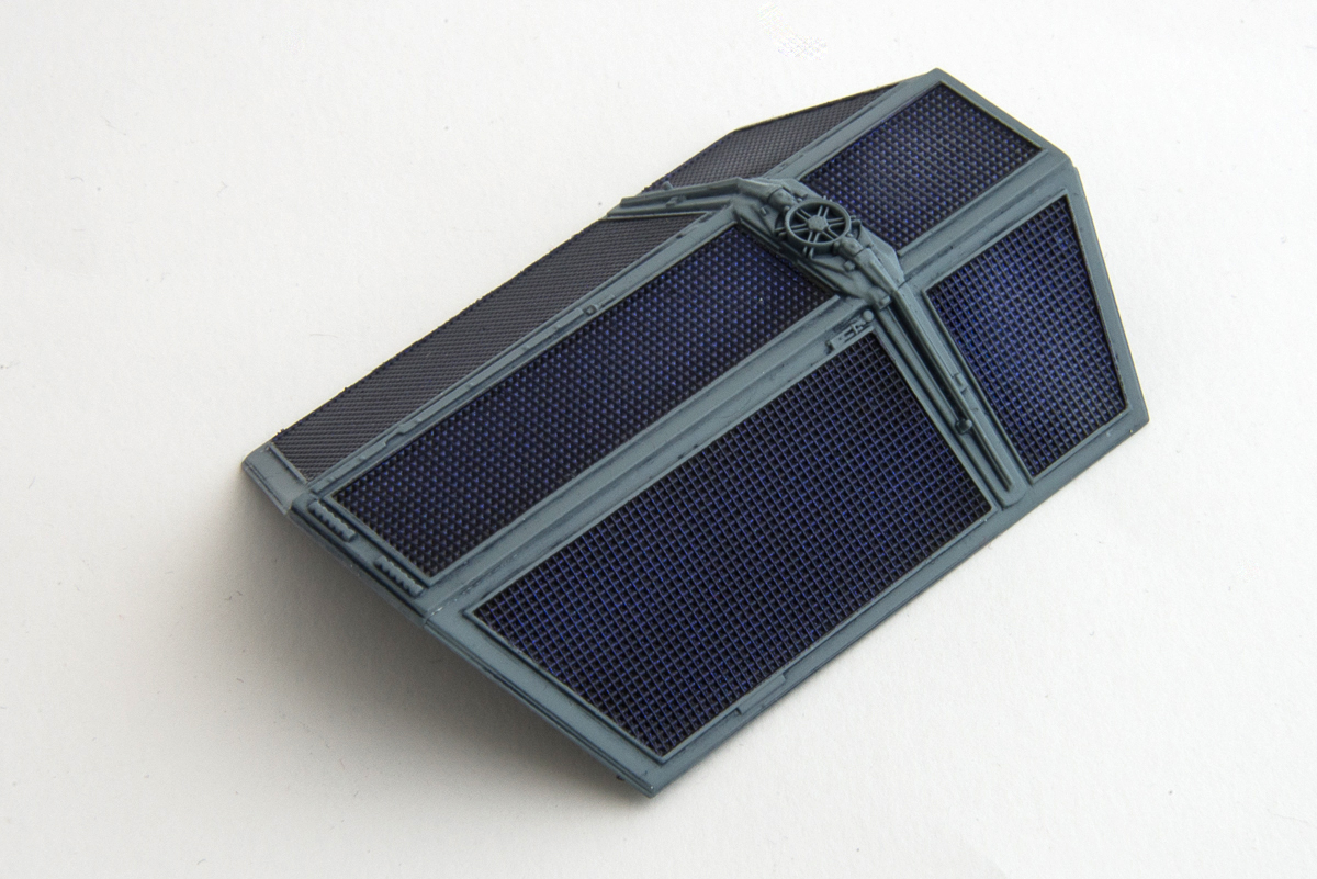 All of the instructions suggest, solar panels should be painted with Black. I don’t know what kind of technology Seinar shipyards use, but earthly solar panels are not just black and they often change colour between black, blue and violet depending on the angle of view. Time to try out the special kind of Alclad paint – ALC-204 Prismatic Sapphire Deep Blue to UV.
