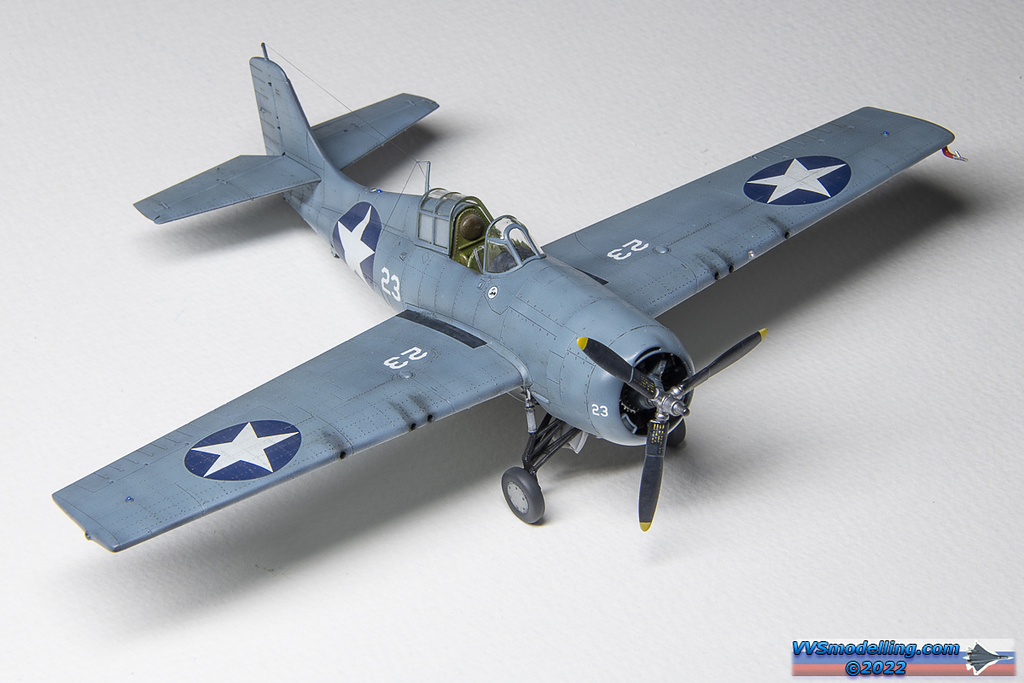 Weathering on the Wildcat is mostly done. These aircraft were almost new at the time of Battle of Midway, so I had to restrain any wild weathering ambitions.