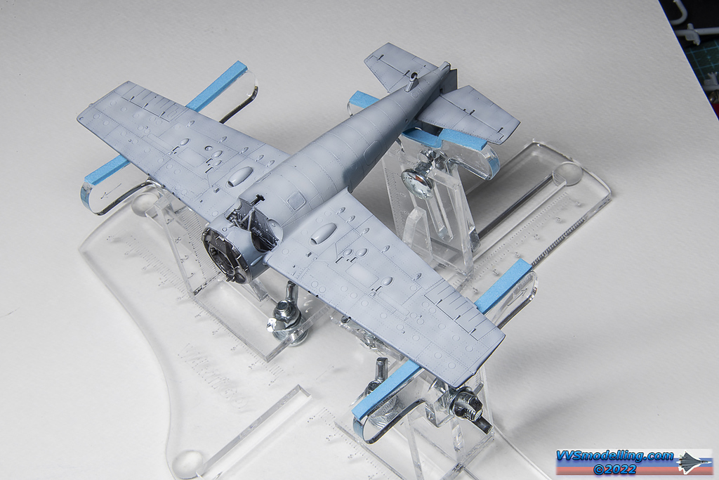 Fuselage closed together and wings added. The wing-fuselage join needed just a slight smear of putty to blend it in. I’ve also invested a couple of hours into riveting the whole model which I think will immensely improve the overall looks later in the build.