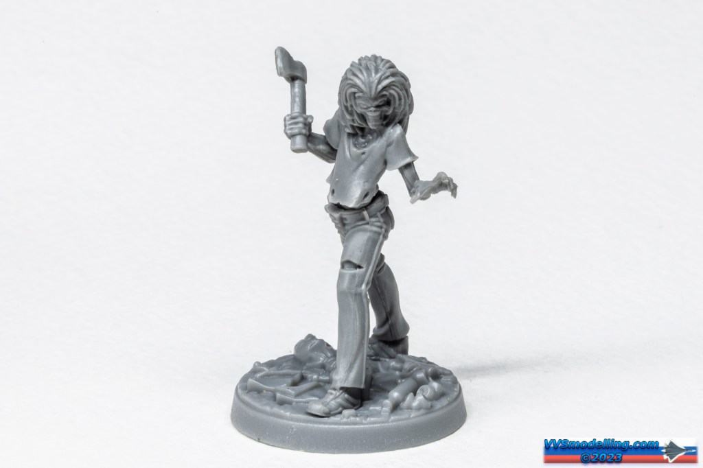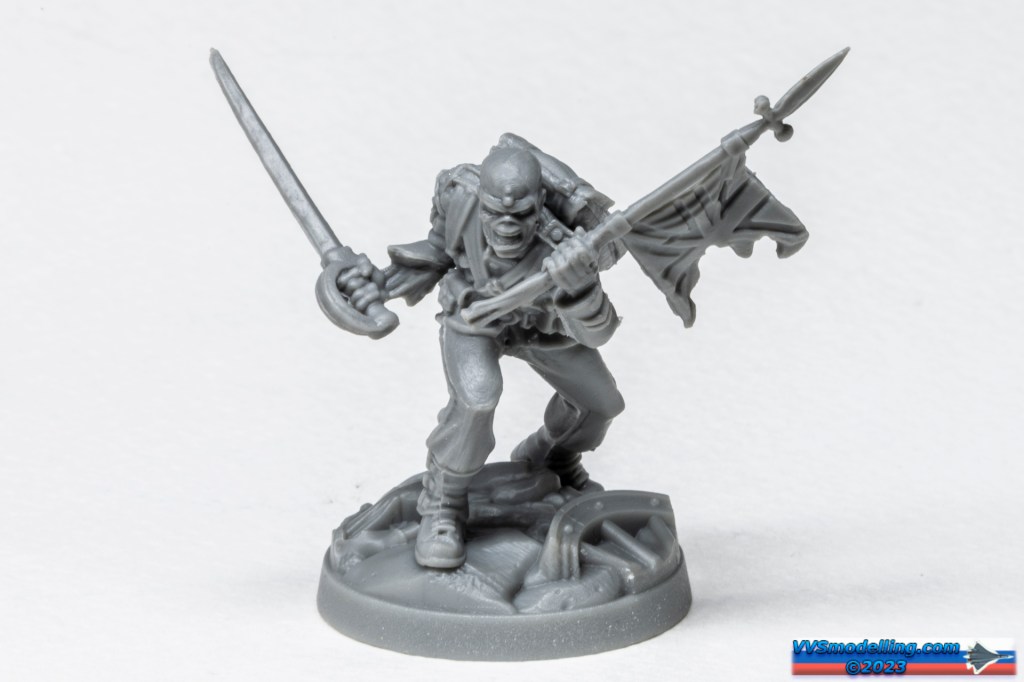 So when I found out, board game company CMON is releasing several Iron Maiden figure packs for their Zombicide game, I jumped onto the pre-order hype train and ordered the 66.6$ bundle off all the Eddie figures and thus also received a bonus bundle figure of the “Original Eddie” from their debut album. After about 6 months of waiting, the figures have finally arrived. Was the wait worth it? Hell Yeah! Here’s a little sneak peak of what you get in different boxings. Standard figures are about 4cm in height, while the Pack #3 features two figures which are easily the double size of that. Made out of resin, there’s little to non clean-up required upon checking them under magnifying glass.