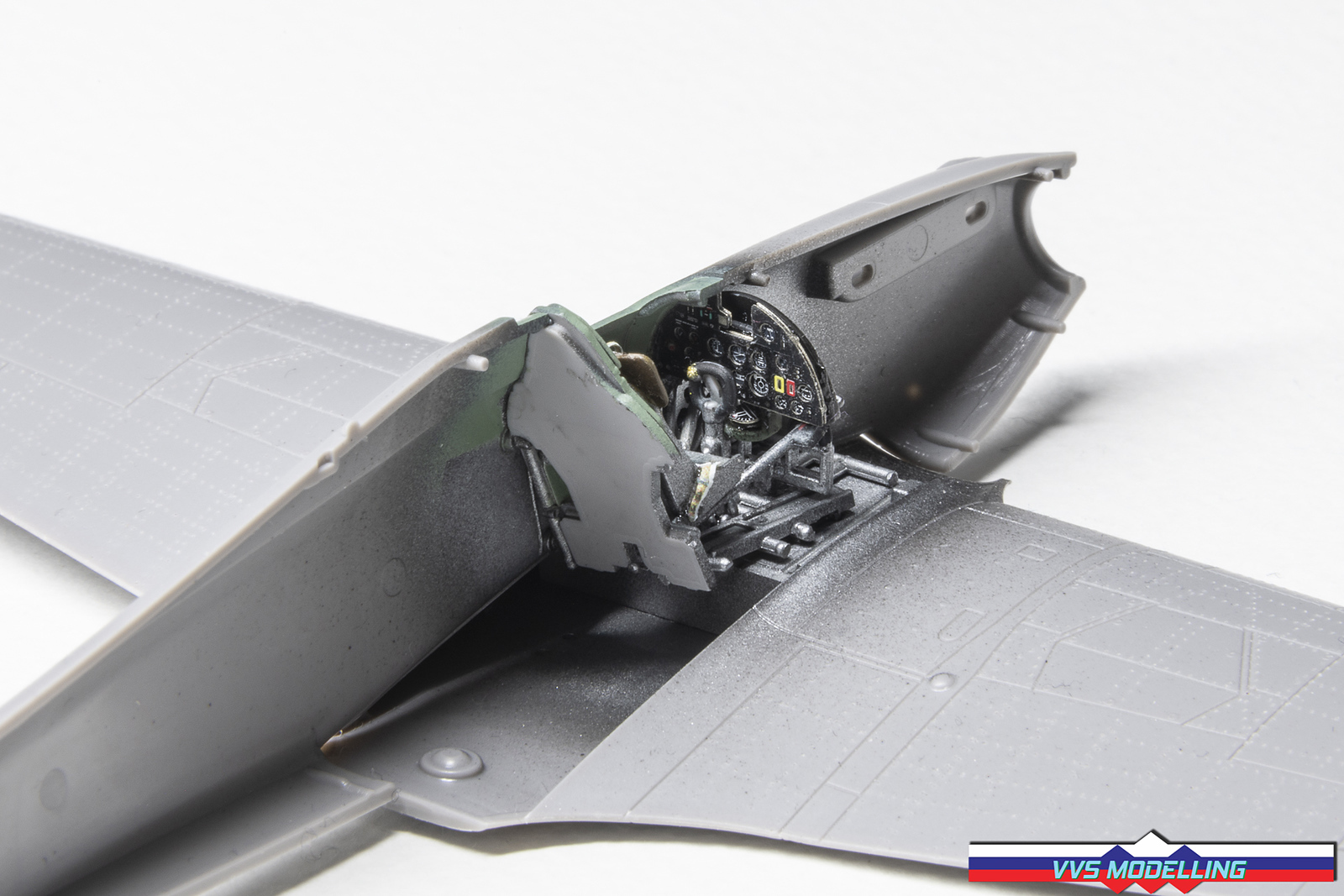 The fuselage halves were joined together and appropriately riveted. You can see how little of the cockpit and especially instrument panel will be visible.