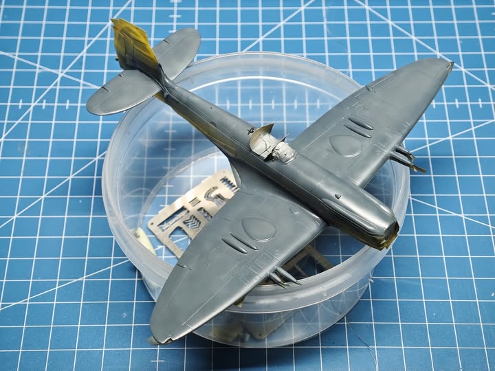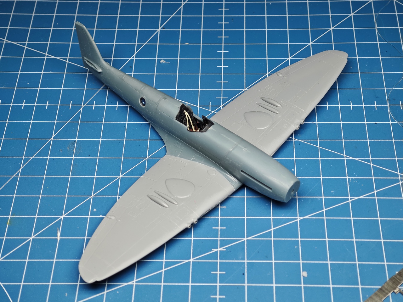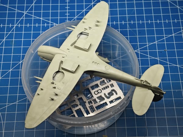 Wings attached to the fuselage and we finally got the shape of the Spitfire! I did read a concerning article on Britmodeller regarding the fit of the wings – the wing halves as well as the whole wing assembly to the fuselage, but I didn’t encounter any significant problems and even the clean up required is minimal.