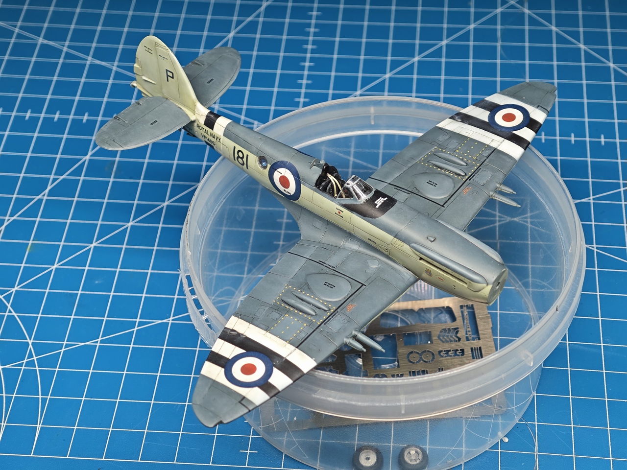 One other thing – I was not able to find a photo of 181. Special Hobby instructions only mentioned the ID stripes on the lower wing but not on the upper and the rear fuselage. However the period photos show them all the same. So I did all the ID stripes. Unfortunately the “ROYAL NAVY” and registration marking at the rear fuselage are printed too big so the “window” between the stripes is larger than you can see in the photos.